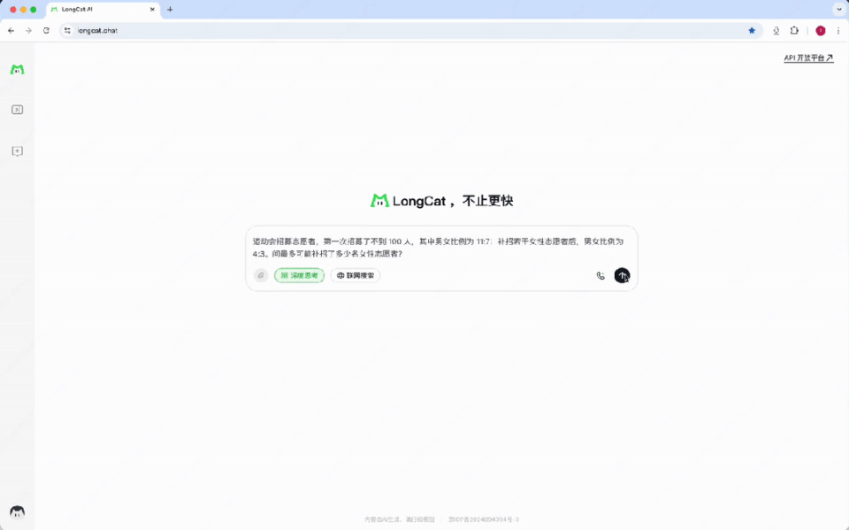 打开 longcat.ai 「深度思考」后开始体验,你第一时间就会被同时冒出的 8 个 Thinker 吸引注意。这正是 LongCat 团队提出的 Heavy Thinking Mode(重思考模式)的外在表现。它不仅看起来炫酷,更重要的是将推理能力推向了新的边界。