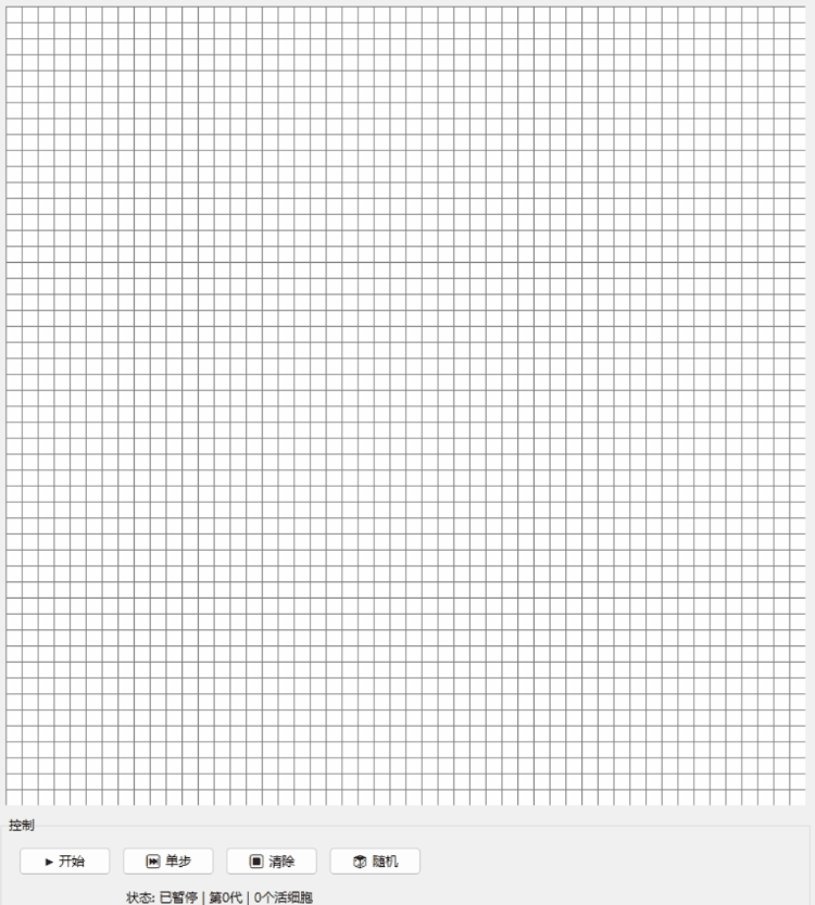 Prompt:用 Python 写一个 Conway 生命游戏,提供可视化网格、暂停、单步和参数调节功能。