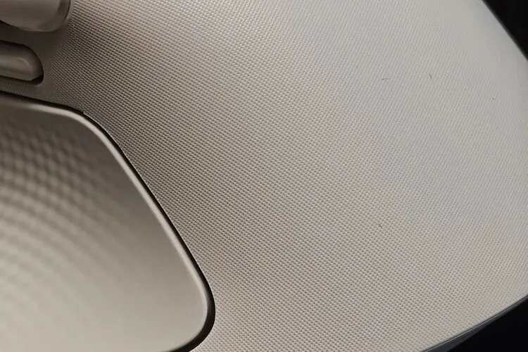 罗技这次终于听到了用户的呼声,在 Master 4 的表面处理上动了真格。它并没有简单沿用前代的细腻涂层,而是在顶部采用了微孔呼吸纹理设计。这种细微的纹理结构在指尖划过时,有一种介于磨砂与织物之间的奇妙触感,既保留了摩擦力,又极大程度地减少了汗液的堆积感。
