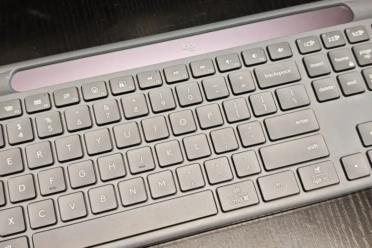 在使用手感上,K980 键盘延续了 Signature Slim 系列的基因。它拥有类似笔记本键盘的剪刀脚结构,但键程更适中,回弹更干脆。键帽中心微微的凹陷设计很好地贴合指腹,长时间码字(比如写这篇稿子)也不会感到手指酸痛。