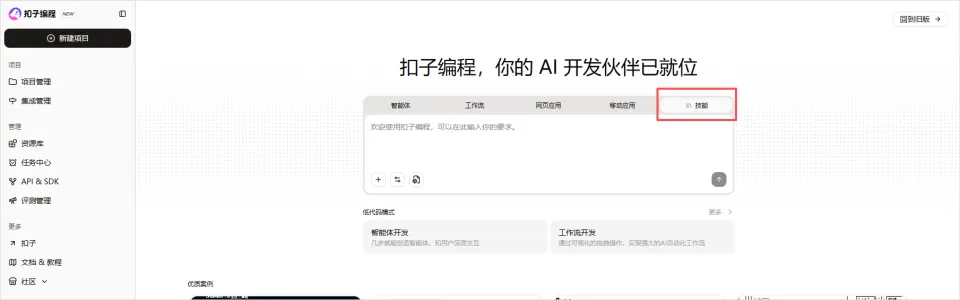 目前,在扣子上,创建技能有两种方式,都比较直观,一种面对普通用户,一种面对专业者。