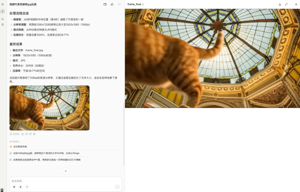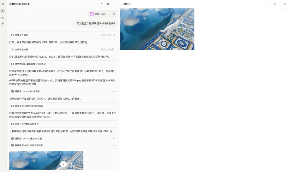 大概也就几十秒,扣子就调用这个Skill,把视频导出成了一个gif,效果极好。