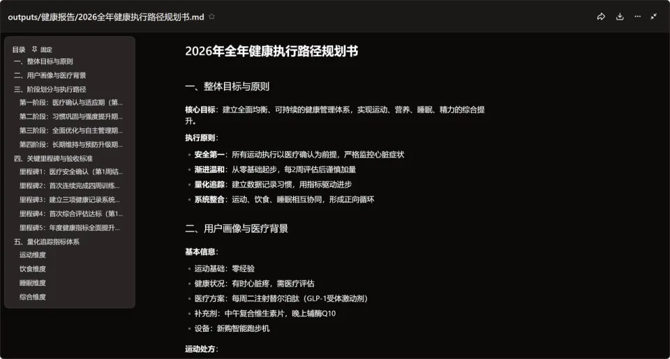 大概等一会,扣子给我生成了2026年全年健康执行路径规划书和第一周的试执行方案