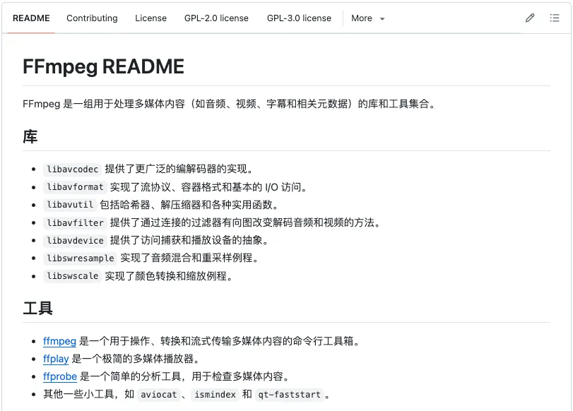 做法也特别简单,因为有一个现成的、究极经典的开源项目,叫做FFmpeg。