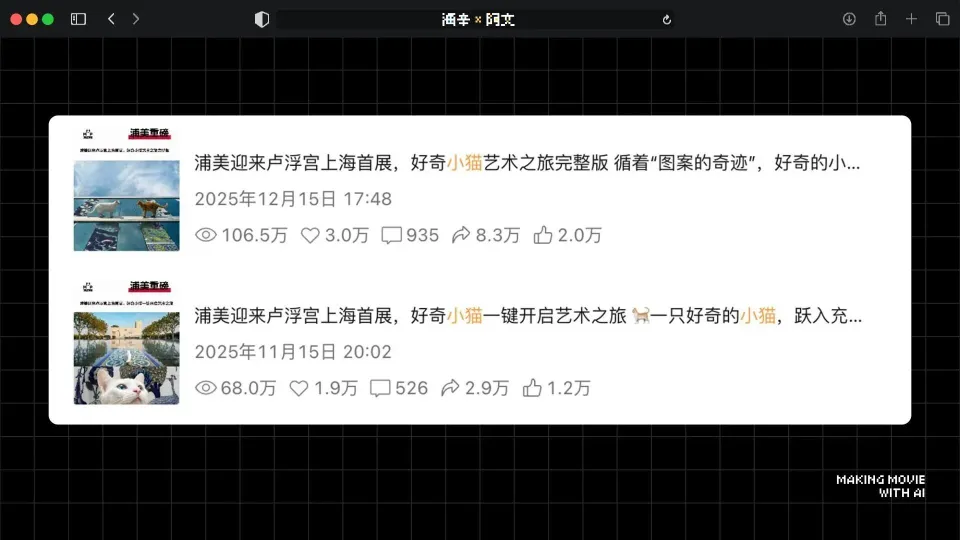 今天想把我们最近为浦东美术馆制作的一组官方宣传片,从创意到分镜到AI工具执行的全过程,做一次尽可能毫无保留的分享。