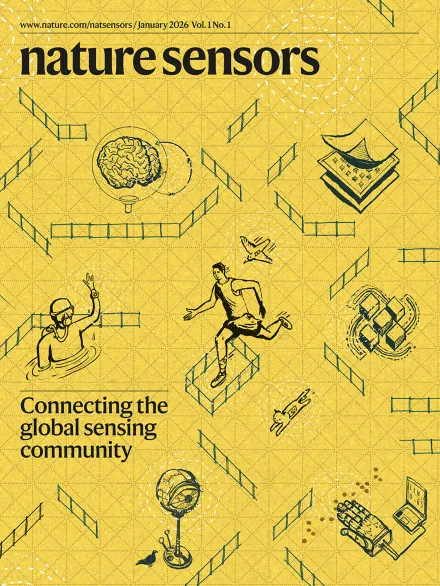 图 1 Nature Sensors 第一期封面图,SuperTac 作为核心元素在封面上进行了展示(右下角)