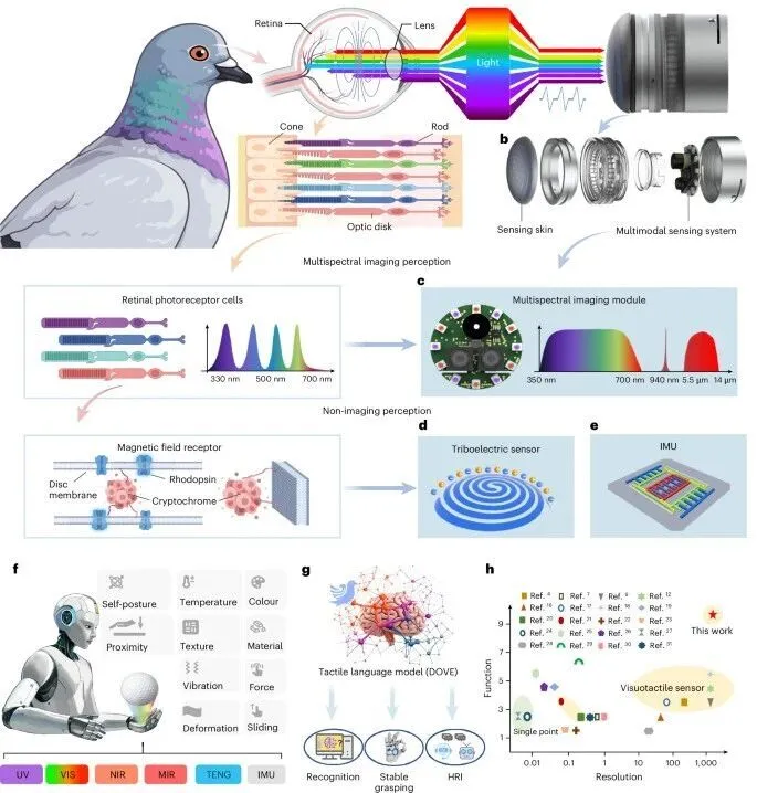 鸽子拥有自然界最复杂的感知系统之一,SuperTac 的硬件设计对应了其生物学特征。