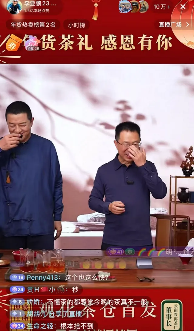 直播间里,网友们已经等不及了,催促的弹幕不断刷过,李亚鹏放下茶杯,一声“三二一上链接”,一款售价6888元的普洱茶饼,被一抢而空,卖出超700单。