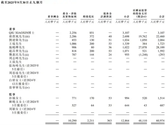 2024年及2025年1-9月,爱芯元智董事及监事酬金如下: