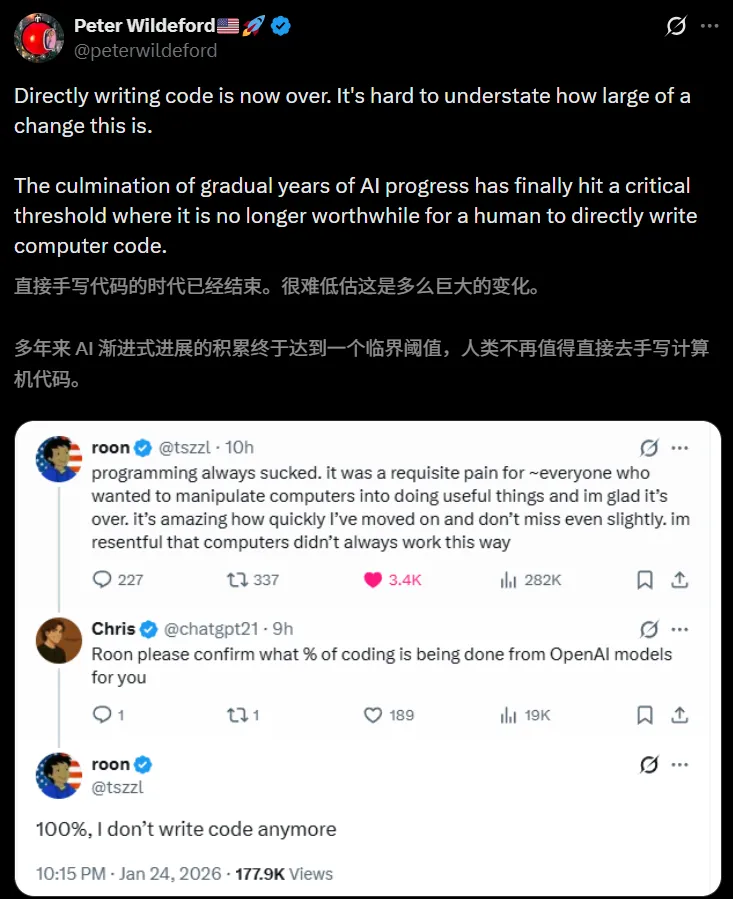 看来,人类直接手写代码的时代,真的结束了。