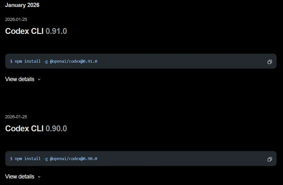 就在今天,Codex CLI连续推送了两次更新,版本号直接来到了0.91.0。