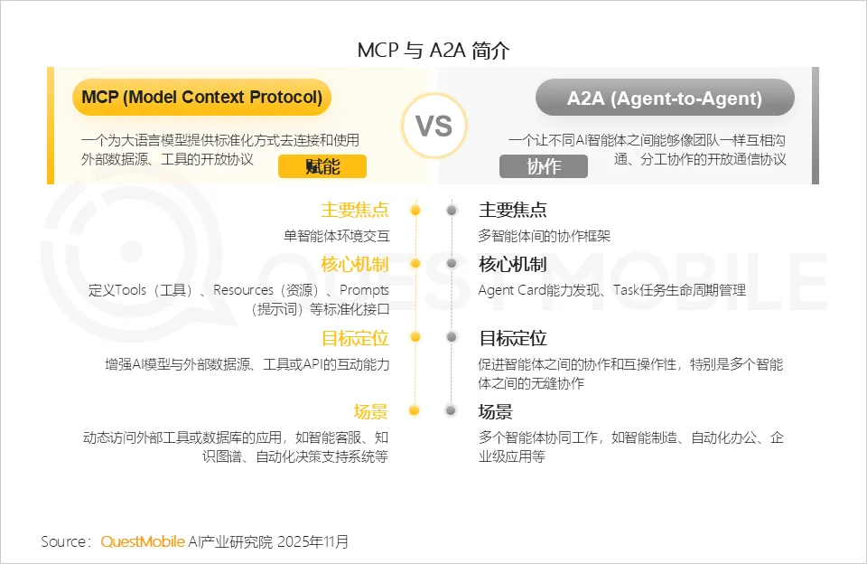 4.3 MCP夯实了单智能体对外连接外部数据源/工具的能力基座;而A2A则在此基础上,聚焦多智能体协作框架,支撑场景复杂度向跨智能体协同延伸