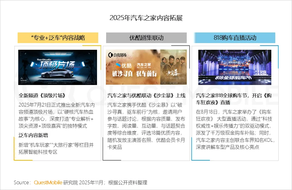 3.5 汽车之家内容生态从“专业垂直”向“专业+泛化+互动”融合转型,并通过跨平台合作、直播及KOL联动,强化品牌影响力