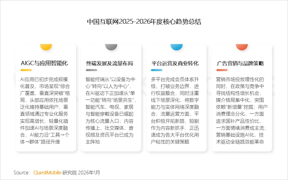 QuestMobile 2025-2026年度核心趋势报告(精华版):智变重构用户价值,流量红利跃迁为服务红利,“产业红海”中新机涌动!