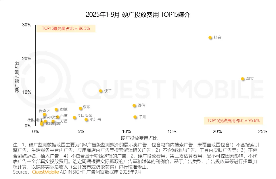 而TOP15媒介的投放费用占比与曝光量占比间的差距,揭示了不同媒介在营销闭环中的差异化定位与价值,以及中腰部媒介仍存潜力空间。