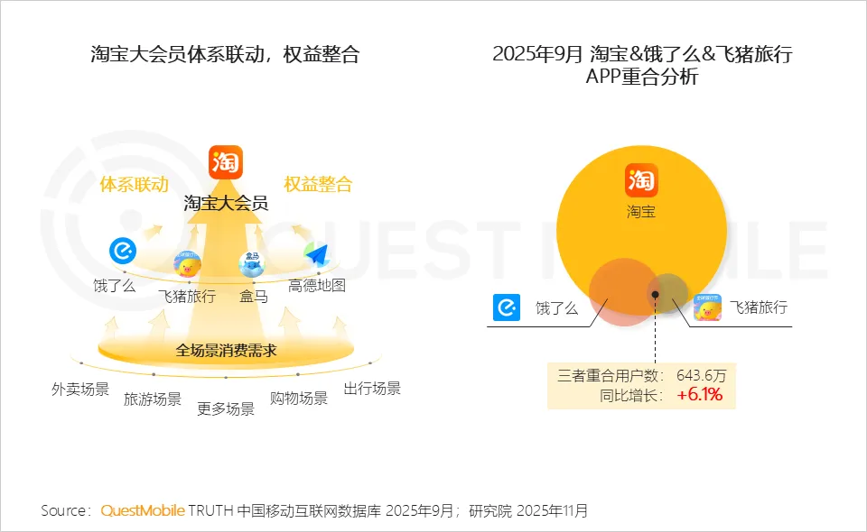 2025年8月,阿里巴巴整合了各业务的供应链、用户基础和会员权益,同时推出了连接饿了么、飞猪等应用的阶梯式会员计划。