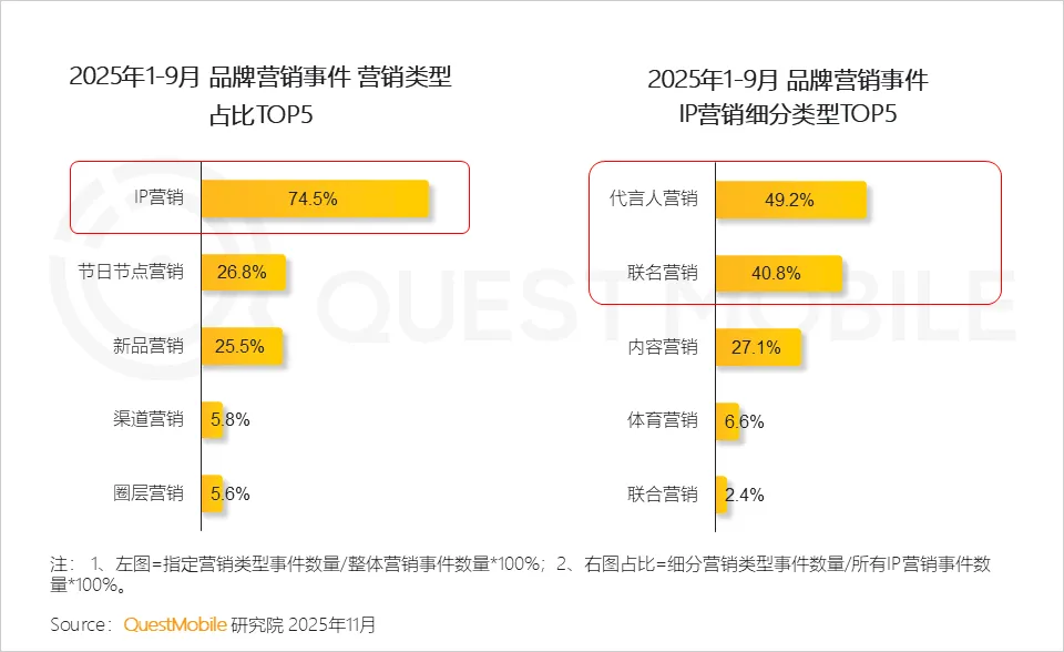 QuestMobile数据显示,2025年1-9月联名营销事件中,品牌与IP联名的占比同比增加24.1个百分点。