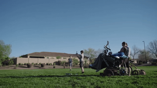 另一位名叫 Brad 的渐冻症患者,去参加儿子的地区机器人比赛时,由于无法转动脖子,Brad 完全无法看到儿子比赛的过程。后来,他找到了一款重量很轻、可 360 度旋转的摄像头,将其安装在轮椅上。
