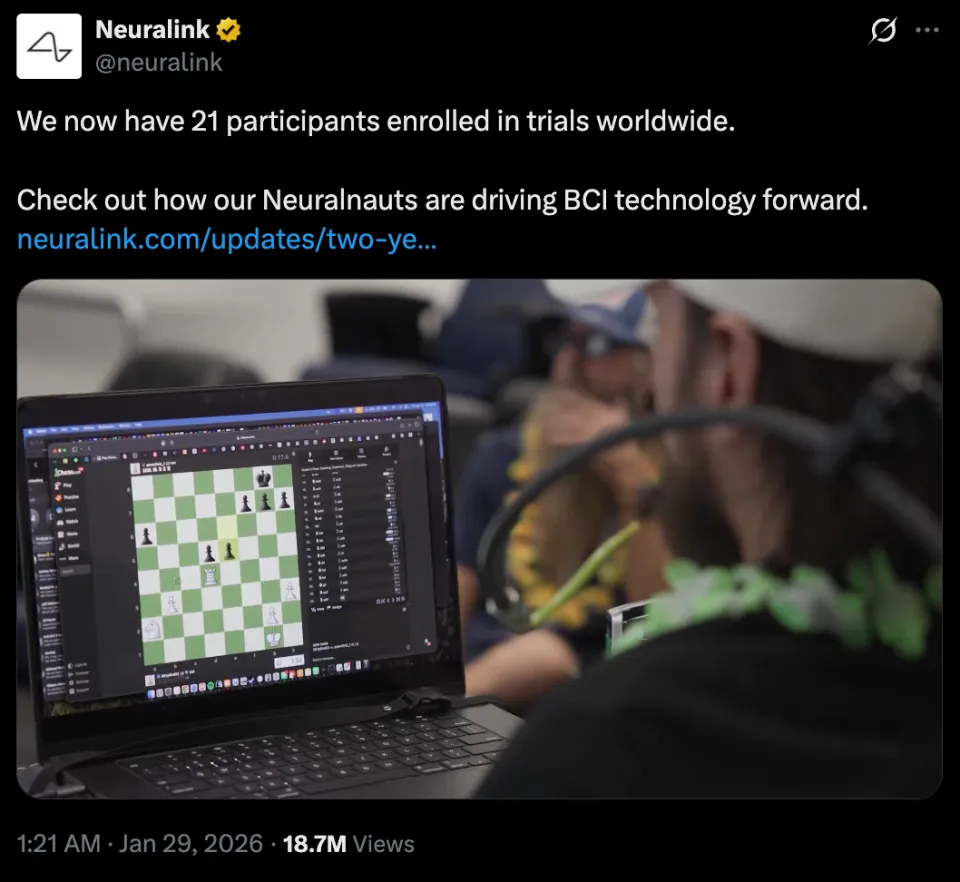 Neuralink 表示,公司正在密切跟踪这些用户与技术的互动情况,以便持续优化设备性能和手术流程。值得注意的是,到目前为止,试验中尚未出现严重的不良反应事件。患者们普遍将这项技术形容为「神奇」。