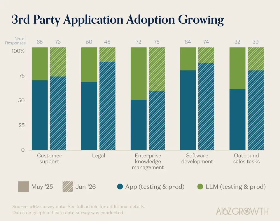 但a16z的调查报告发现,这种“应用末日论”被严重夸大了。