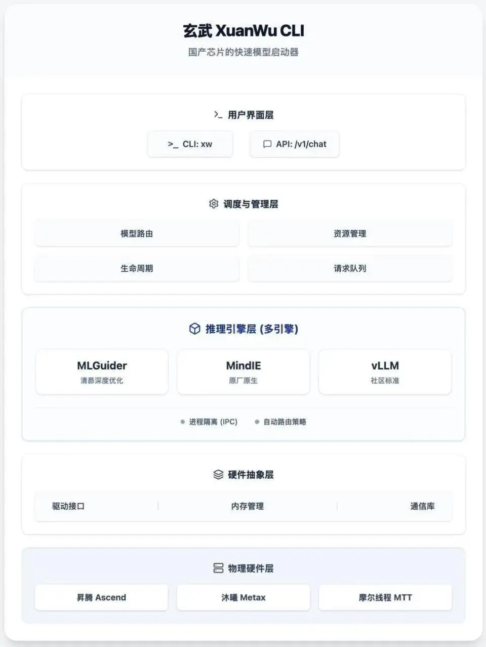 如果说 Ollama 的成功来自「让 GPU 消失在用户视野中」,那么玄武 CLI 的目标则是「让国产 GPU 的差异性也消失」。