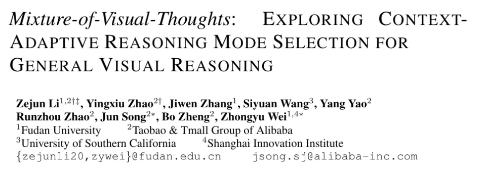 论文标题:Mixture-of-Visual-Thoughts:Exploring Context-Adaptive Reasoning Mode Selection for General Visual Reasoning