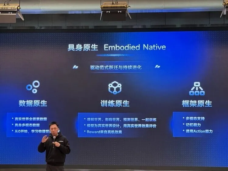 原力灵机的通稿里引用了唐文斌的一句话:“2026 年不是具身智能的元年,而是具身原生的元年。”