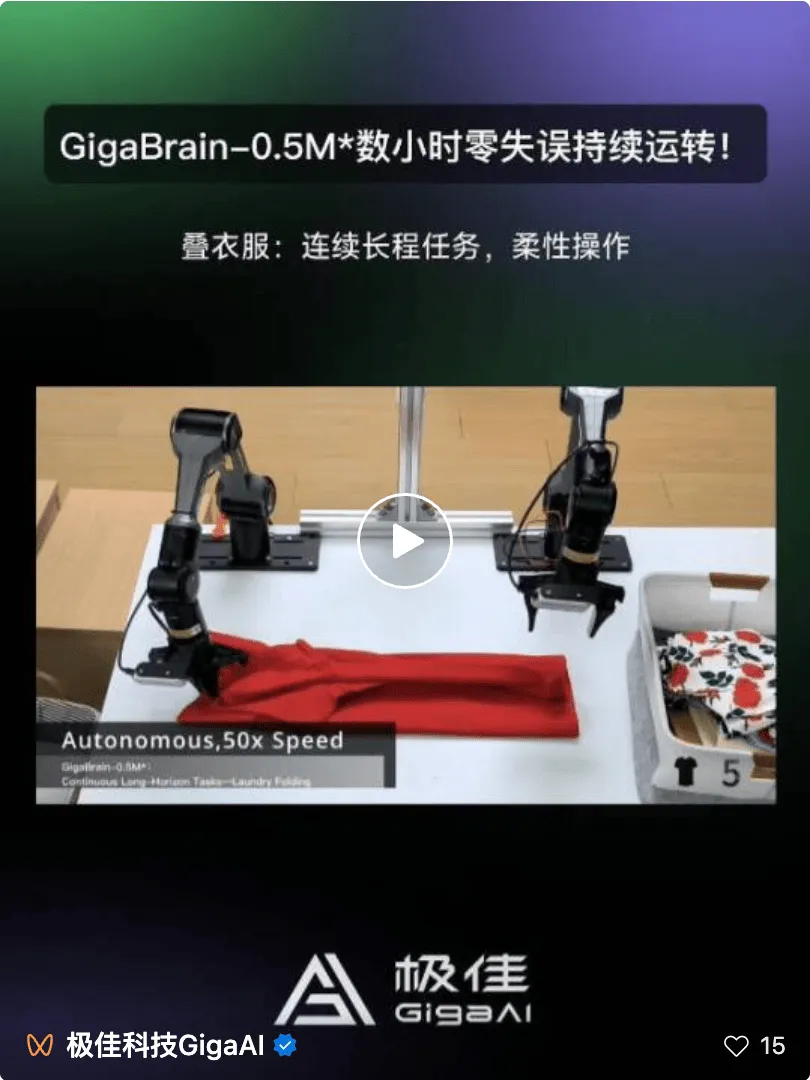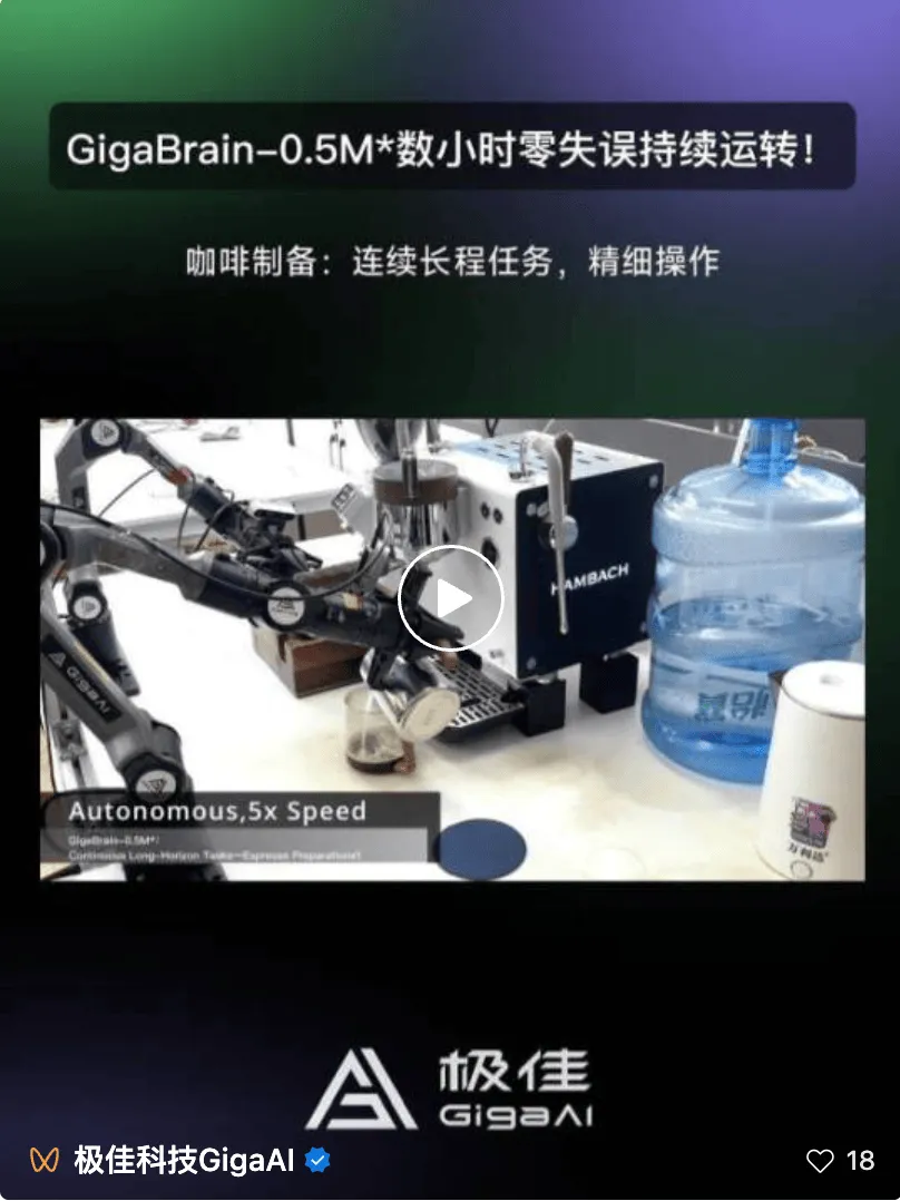 极佳视界是国内第一家布局世界模型的科技公司,以世界模型平台 GigaWorld、通用具身大脑 GigaBrain、原生本体 Maker 构建闭环生态,致力实现 10-100 倍以上的数据、训练、测试全链路效率提升,推动通用具身智能机器人、通用自动驾驶等物理 AGI 大规模爆发。