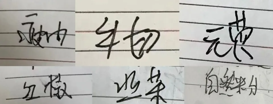 豆瓣有个「史上写字最烂小组」,一群写字稀烂的人在这里展示着自己那饱受争议的书法,只要字迹足够潦草、丑陋,就能在组里封神。其中有个「烧脑毒体大合集」,里面全是从餐厅选购食材的本本上摘的烂字,甚至还有「通假字」。