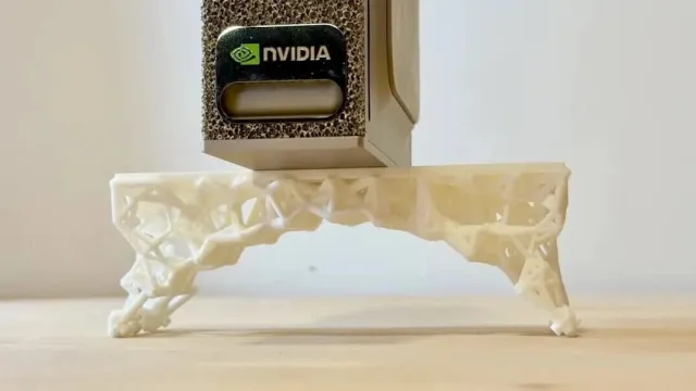 3D 打印后,还做了受力测试(用的是 nvidia DGX Spark ,大约 2 斤半重),确认结构在工程上也立得住。