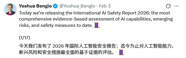 图灵奖得主 Yoshua Bengio 领衔的重磅《2026 国际人工智能安全报告》发布。