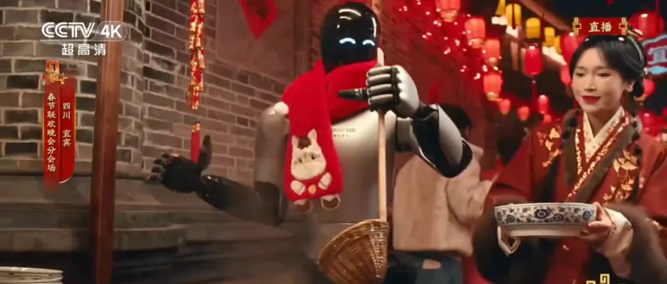 与易烊千玺同舞、现场做燃面,机器人真整出了年味。