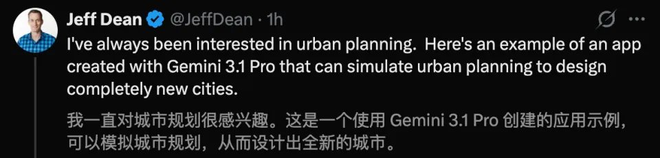 谷歌UX工程师Michael Chang直接上手,用3.1 Pro模拟复杂的城市规划,瞬间生成并设计出了一个全新的城市鸟瞰拓扑。