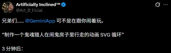 仅仅输入一句话的Prompt,3.1 Pro便在短短3分钟内,搓出了一个长达11秒SVG动画。