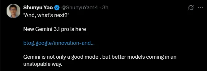 谷歌夺回王座:Gemini 3.1 Pro来了!姚顺宇:后面还有更好的