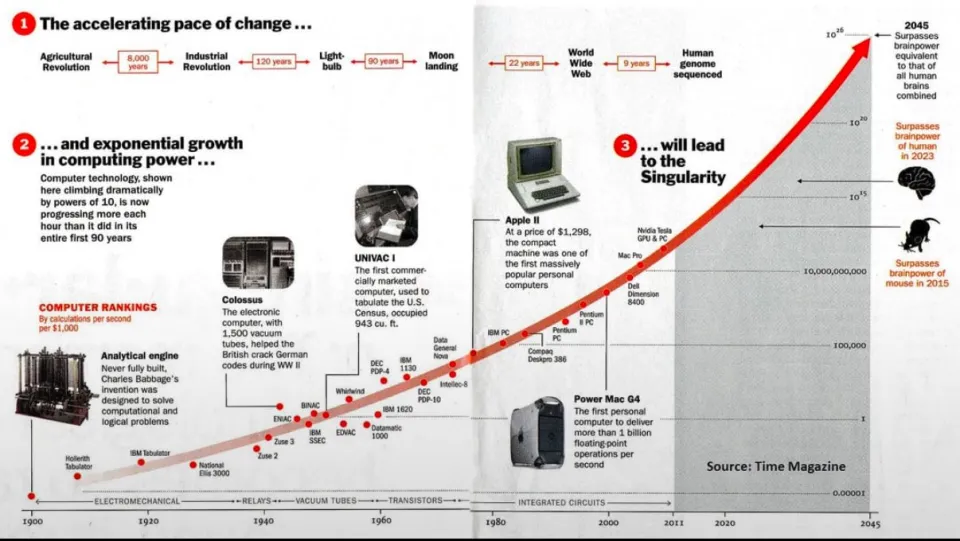 Kurzweil Ray坚定地表示:「到了2045年,通用人工智能不仅已经实现,人类也将开始与AI融合,我们的大脑将接入超级计算系统,智能水平比今天提升至少1000倍。」