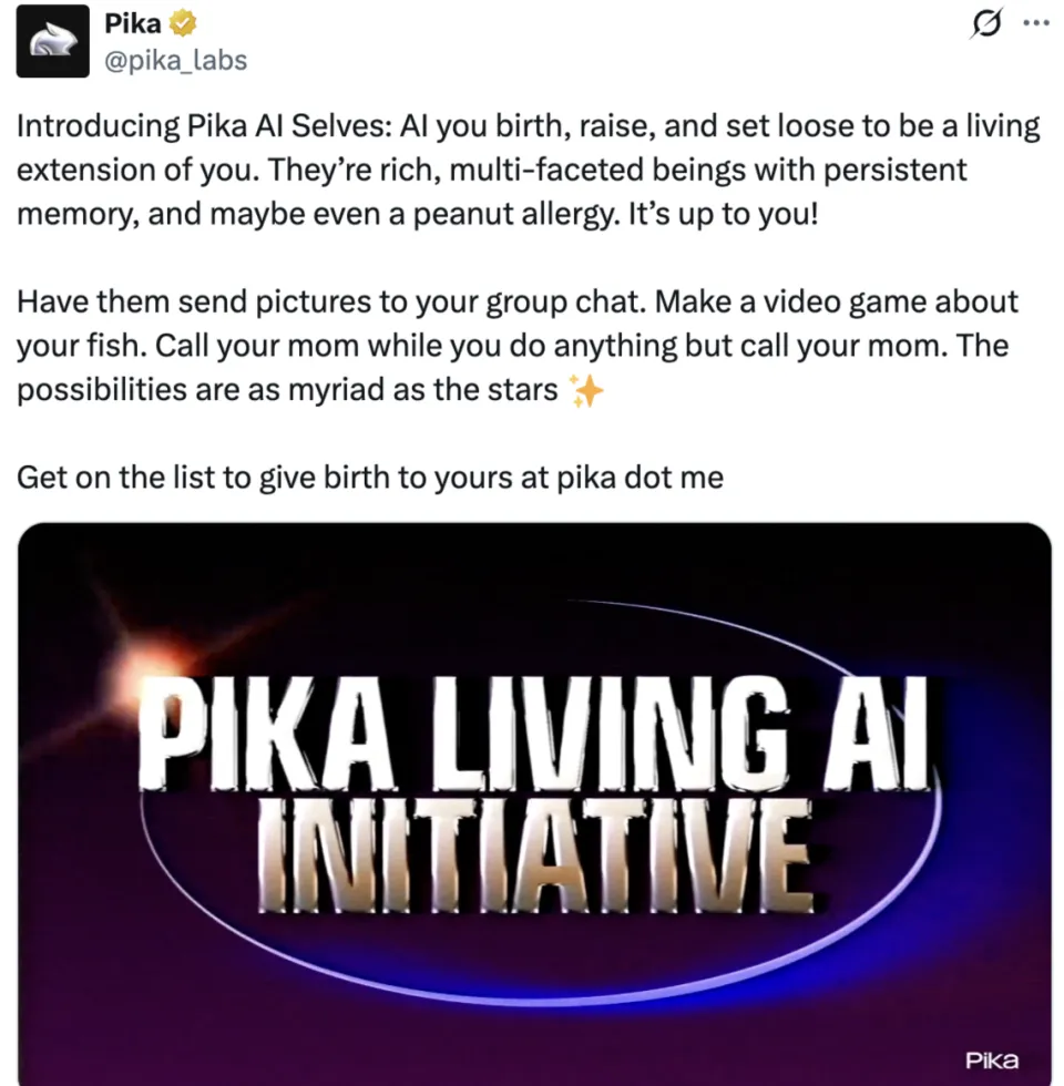 不卷视频卷「造人」?Pika推出AI Selves,让你亲手「养大」数字分身