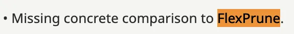 更扎心的是评语:审稿意见中说你没做与「FlexPrune」的具体的对比实验。