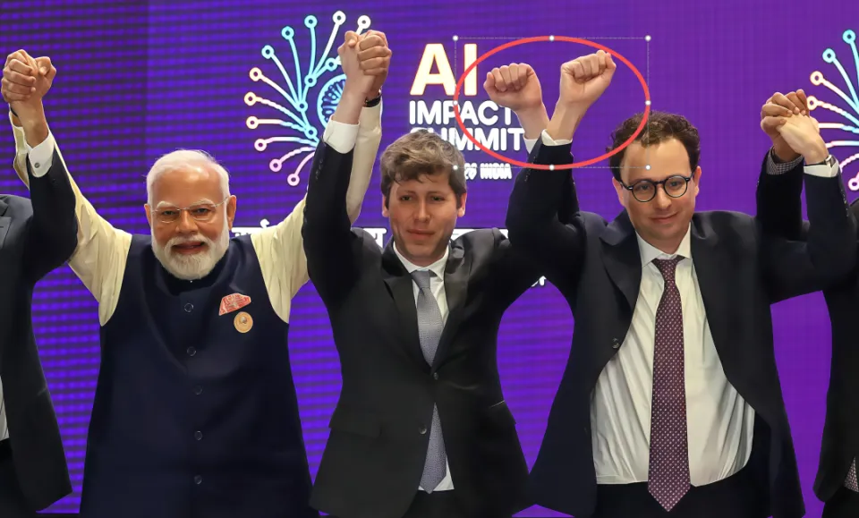 2026 年 2 月 19 日印度人工智能影响力峰会上,OpenAI CEO Sam Altman 与 Anthropic CEO Dario Amodei 在合影环节拒绝牵手、默契举拳,成为 AI 圈名场面并引发全网热议。