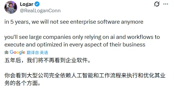 甚至有网友大胆预言:“五年后,我们将不再看到企业软件。大型公司将完全依赖人工智能和工作流程来执行和优化业务的各个方面。”