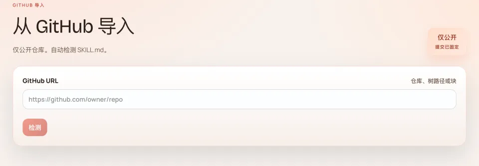 clawhub 还支持直接从 GitHub 仓库导入 Skill。只要仓库里有标准的skill.json配置文件,ClawHub 就能自动识别并安装。这比上传文件方便很多。