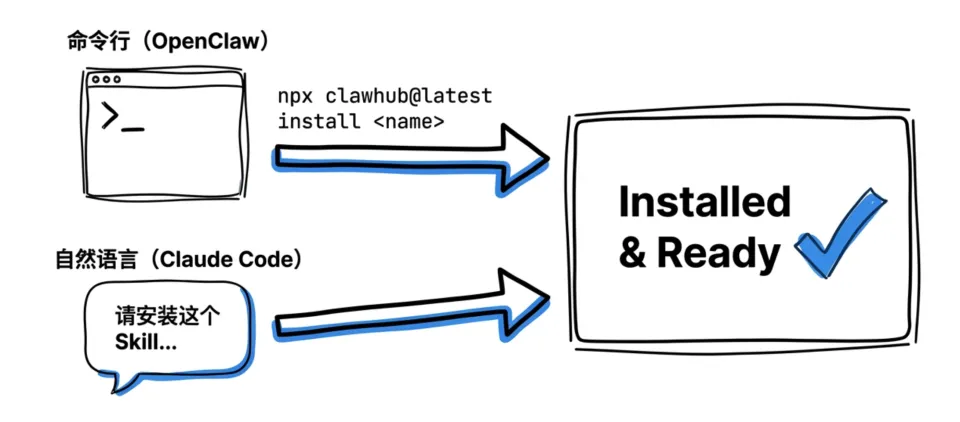 ClawHub 的 Skill 使用非常简单,目前支持两种方式。