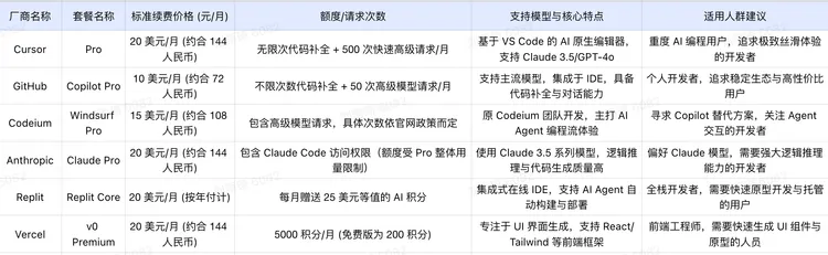 主流AI编程工具的定价,已经形成了一种高度默契的“精英化”标准:无论是最受圈内推崇的Cursor,还是捆绑了Claude Code的Claude Pro,面向个人开发者的主推档位,惊人地一致停留在20美元/月(约合人民币140元)。稍便宜的Windsurf Pro和GitHub Copilot Pro,也要15美元和10美元。