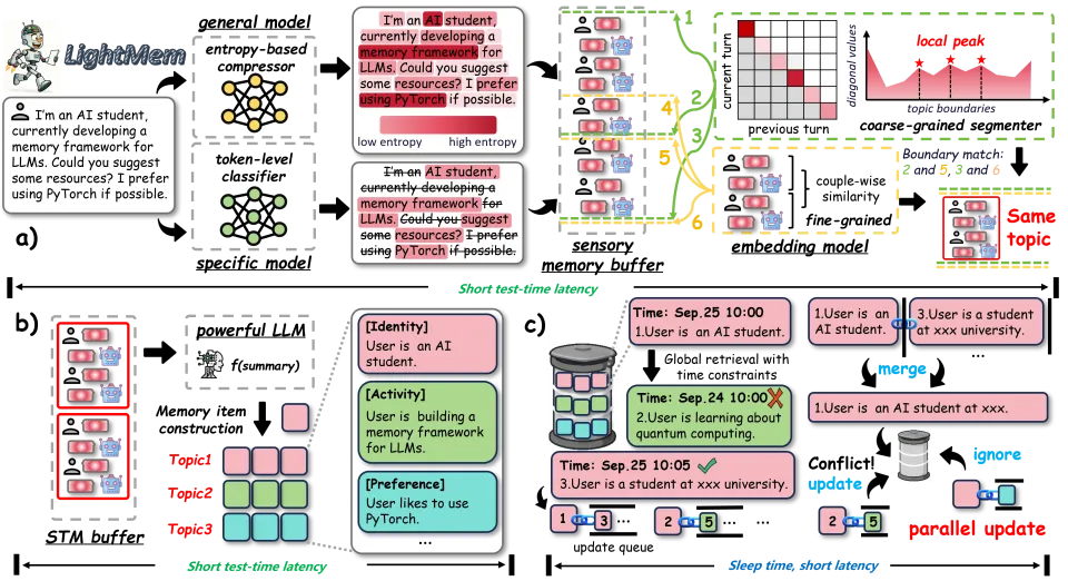 LightMem 是一套面向真实长交互场景的 “轻量记忆系统” 答案: