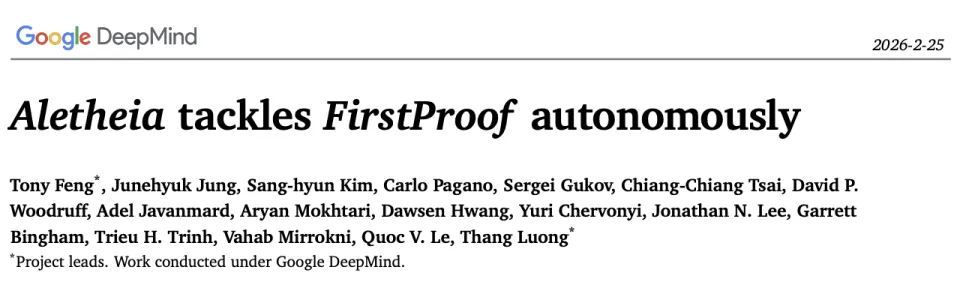相关论文《Aletheia tackles FirstProof autonomously》已发布在 arXiv,并且团队在 Github 上公开了解决 FirstProof 问题的提示词与输出结果。