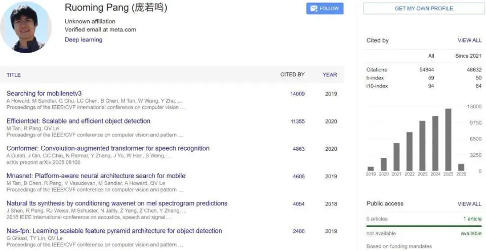 庞若鸣的职业生涯跨越了多家科技巨头,他本科毕业于上海交通大学。他在谷歌工作了 15 年,先后加入了苹果与 Meta: