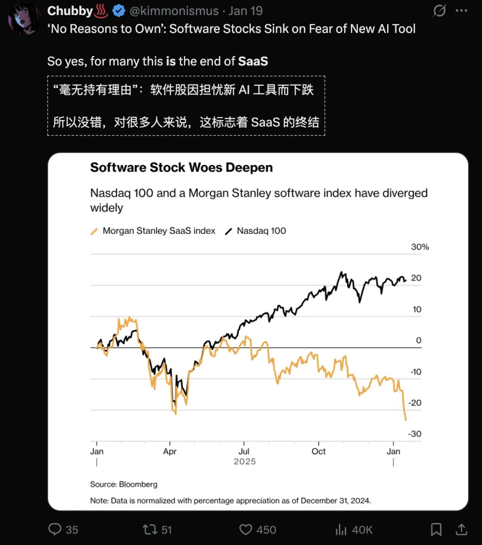 甚至Claude Cowork发布了几款插件,最后竟引爆了全球软件业末日,全球股市或因此蒸发万亿市值!