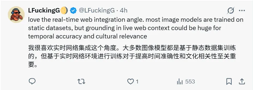 谷歌产品负责人 Logan Kilpatrick 也表示,实时联网能力会催生大量新的应用场景。当模型不再只依赖训练数据,而是可以调用最新信息进行理解与生成,图像就不只是创作工具,而开始成为实时知识的表达界面。