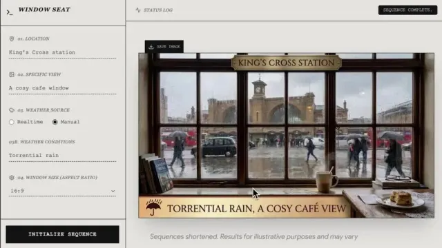 Google在开发者博客中展示了一个名为“Window Seat”的demo应用:给定一个地点名称,模型会先搜索该地点的实时天气和街景图片,再生成一张对应的窗外风景。它不再单纯依赖训练数据进行“回忆”,转为基于实时信息开展创作。