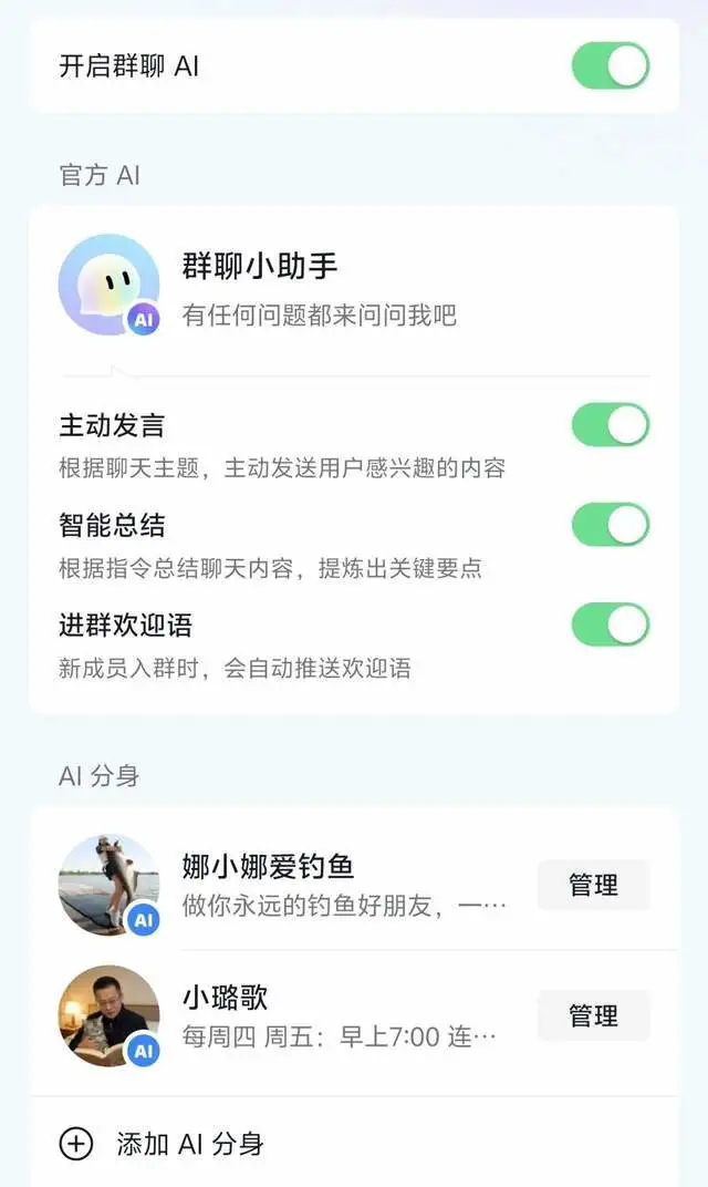 此外,用户还可以在群里添加其他用户创建的AI分身,从而获得更个性化、专注于某一领域的Agent。
